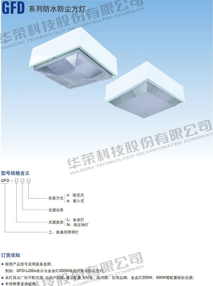 • 產(chǎn)品名稱:GFD 系列防水防塵方燈
