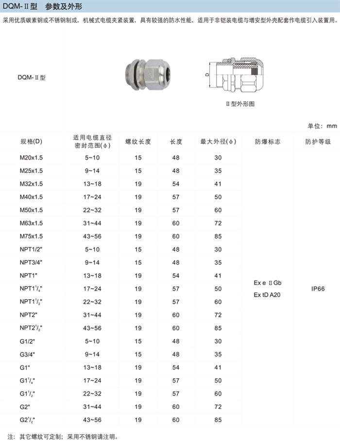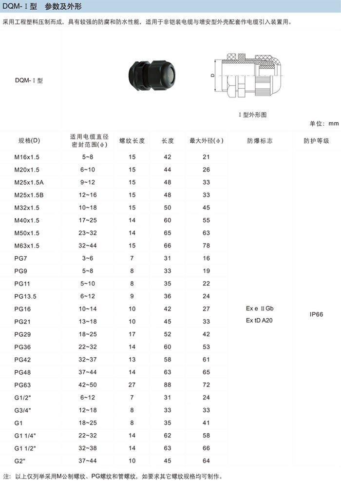 上一個產品:DQM系列防爆電纜夾緊密封接頭(d) 下一個產品:DQM系列防爆電纜夾緊密封接頭(填料式)